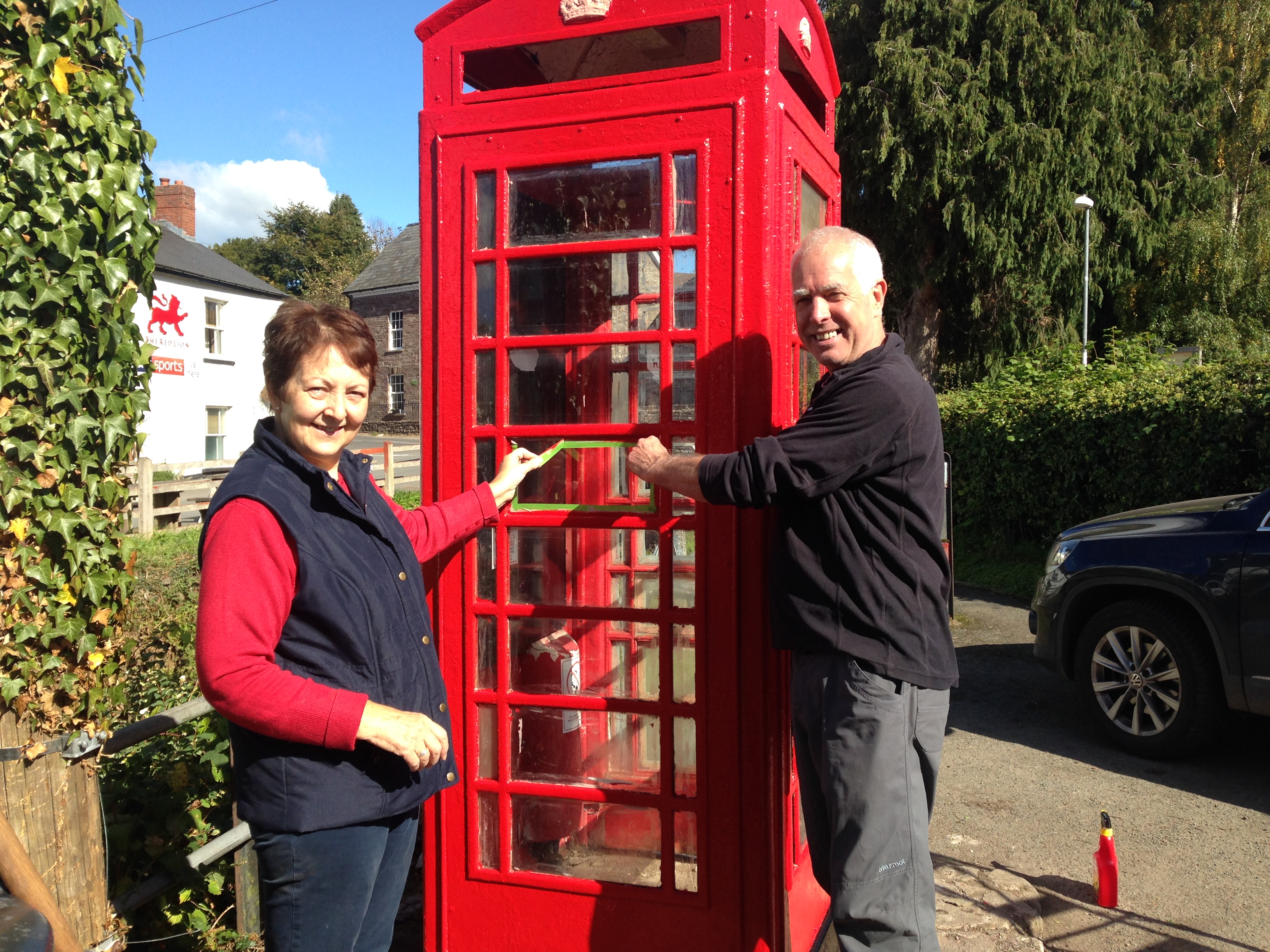 This iconic red kiosk in the village was purchased by Llangors Youth and Community Centre on September 26th 2016 from BT for the sum of £1. Since then a lot of work has been done by a few committee stalwarts in their spare time, in between rugby matches and the weather – either too hot or too wet!