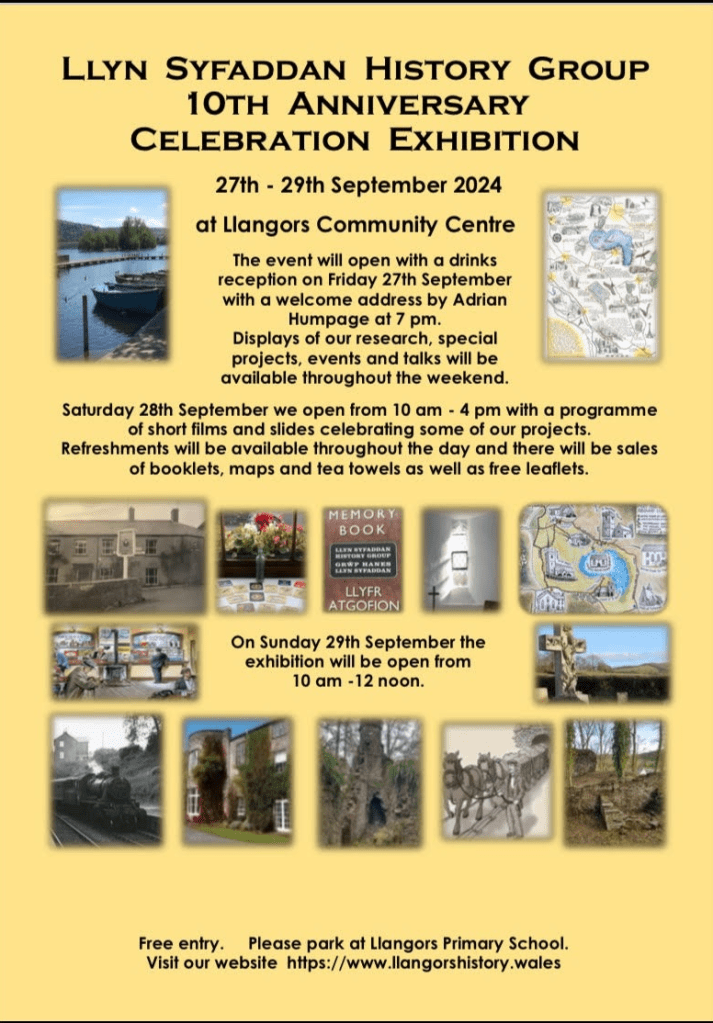 We will have a table at the Llyn Syfaddan History Group Celebration weekend in Llangors Community Centre, which will display many interesting items from this time including letters, photographs, minutes etc . We are also asking people to record their recollections of times spent in the hall.
